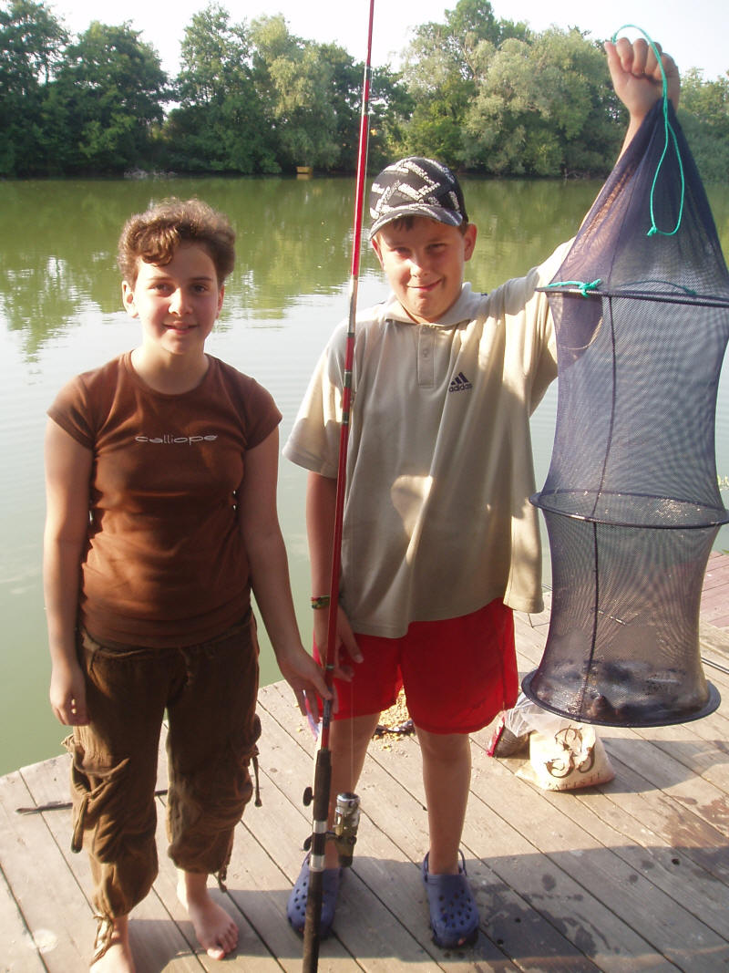 A tábor területén lévő stégről, a két országot elválasztó Karcsa folyóból próbáltak halat fogni néhányan.