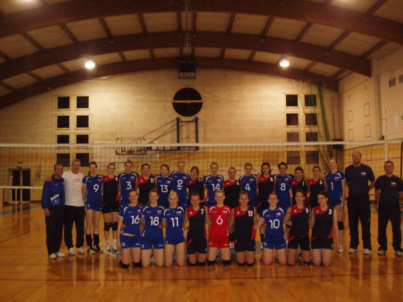A - végül második helyezést elért - szlovén válogatottal egy mérkőzés utáni csoportkép.