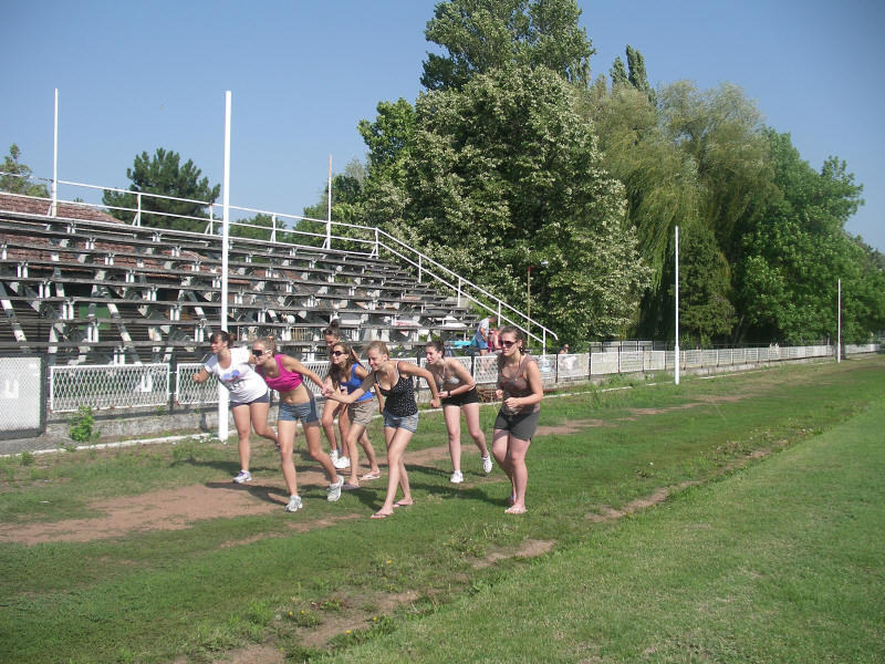 A 600 méteres futás felmérése ezen a pályán történt. Csak a futás után jutott eszünkbe, hogy képet készítsünk. A futás imitáció ilyen rosszul sikerült.