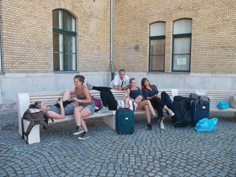 "Átszállás" előtti várakozás a szegedi vasútállomáson.