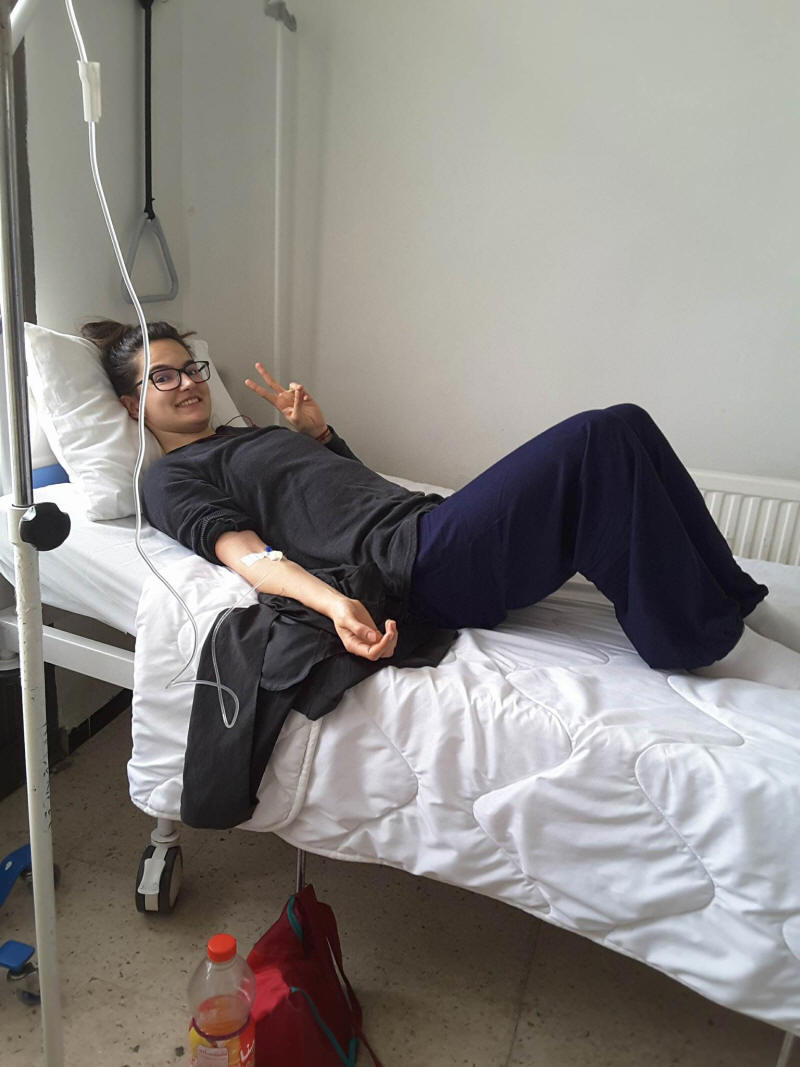 Sajnos Fehér Anna Ditta beteg volt, így egy magánklinikán kapott gyors ellátást. Csak érdekességként: az infúzió, az injekció és a gyógyszerek költsége összesen 2 euro volt, amit persze vendéglátóink nem engedtek kifizetni.
