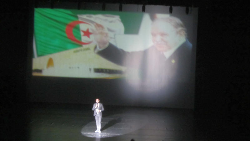 Az előadás közben többször megjelent kivetített képen az Algériai Demokratikus és Népi Köztársaság elnökének képe.