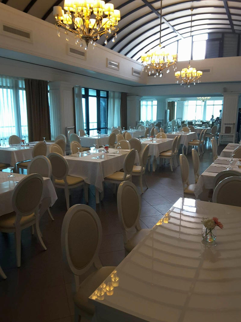A Hotel Raya belseje és környéke is szép. A felső képen az étkezőterem.