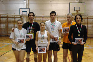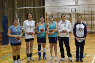 A hölgyeknél teljes sikert arattunk, hiszen először mindhárom csoportban a győzelmet a mi egységeink szerezték meg, majd a keresztjátékban is az "eötvösös" alakulatok diadalmaskodtak, így a képzeletbeli dobogó mindhárom fokára egyesületünk tagjai állhattak. A bronzérmet a Kovács-Miskolczi Noémi - Kovács Katalin duó szerezte meg. (Kovács Kata volt az egyetlen résztvevő a bajnokságban, aki mindkét nap érmet tudott nyerni.) Az aranyéremért magas színvonalú mérkőzésen felváltva vezettek a csapatok. Végül az ezüstérmet a Jenei Kinga - Pető Tamara páros, míg az aranyat a Hock Renáta - Szabó Kármen egység szerezte meg.