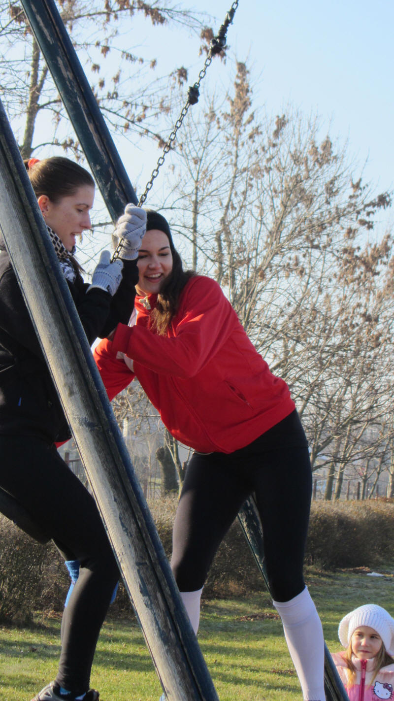 A futás előtt (még) jó volt a hangulat. (Bár a kicsik rosszallóan néztek a gonosz nagyokra, akik elvették a játékaikat.)