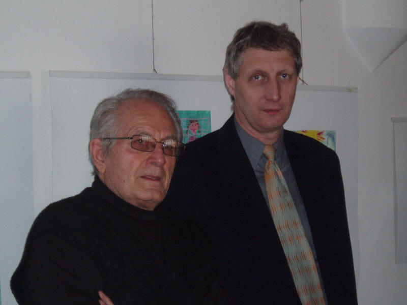 Szombathy András mellett Boros György grafikusművész áll, aki a szabadkai helyszínen rengeteget segített a szervezésben, lebonyolításban.