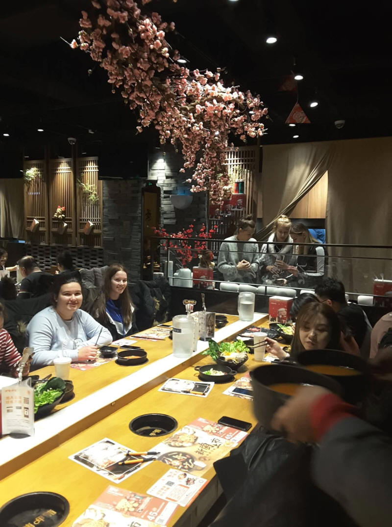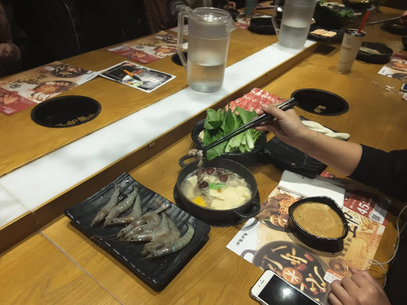 We arrived to Tianjin in the evening. We were in a special restaurant for dinner. We had to choose a basic soup, then we can choose raw vegetables, meat, fish, crab. We put them to the soup which was boiled in front of us, then using our chopstics to eat them.