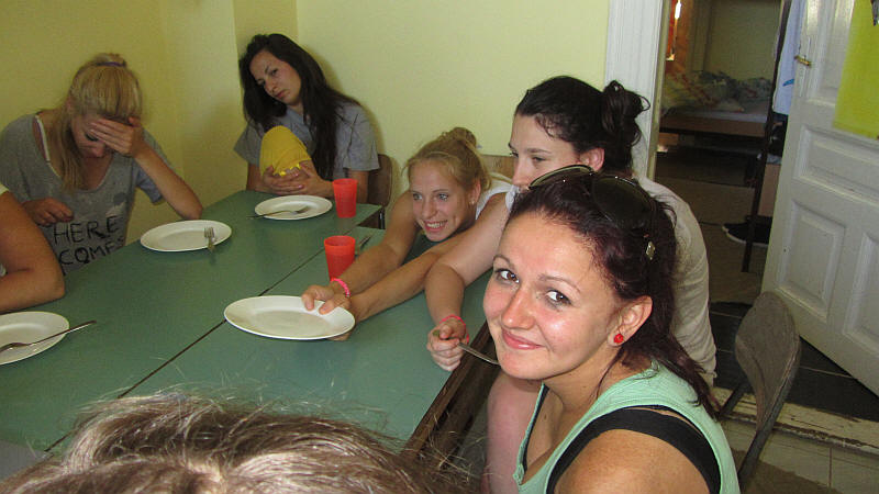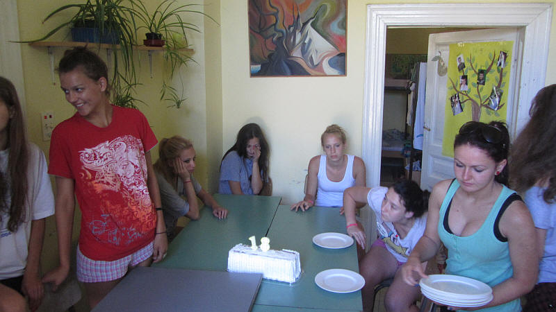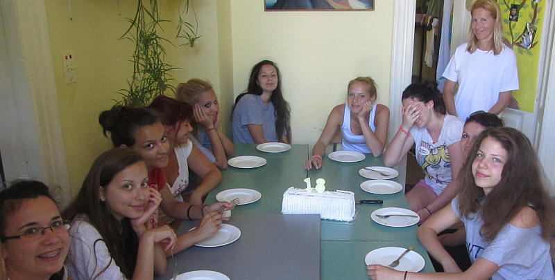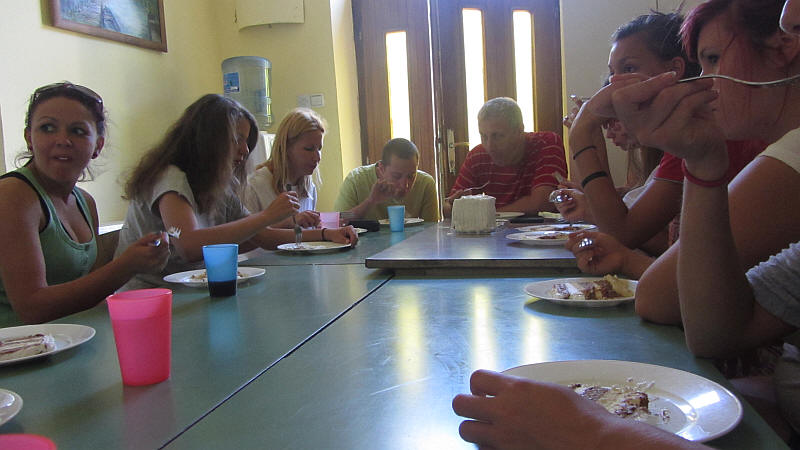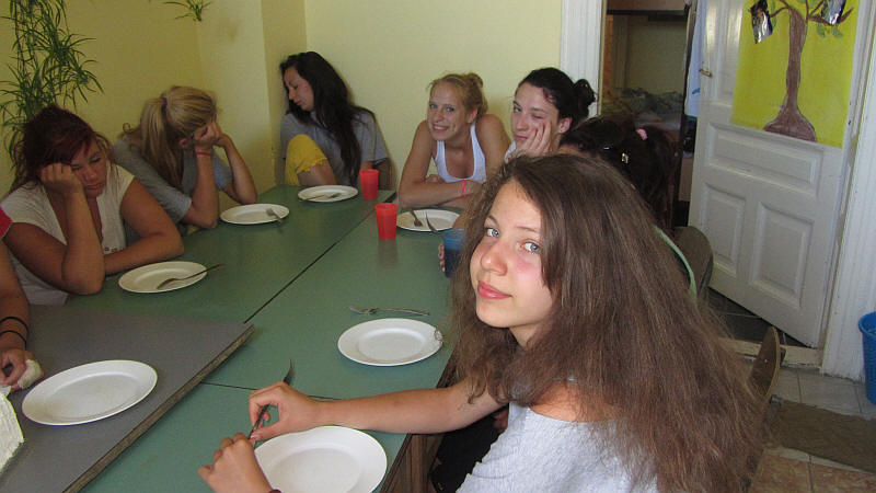 Kicsit álmosan, de jóízűen fogyasztották a lányok a tortát.