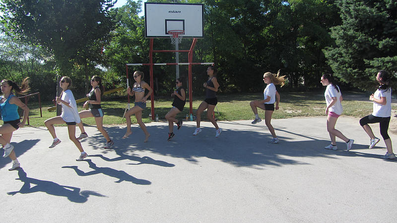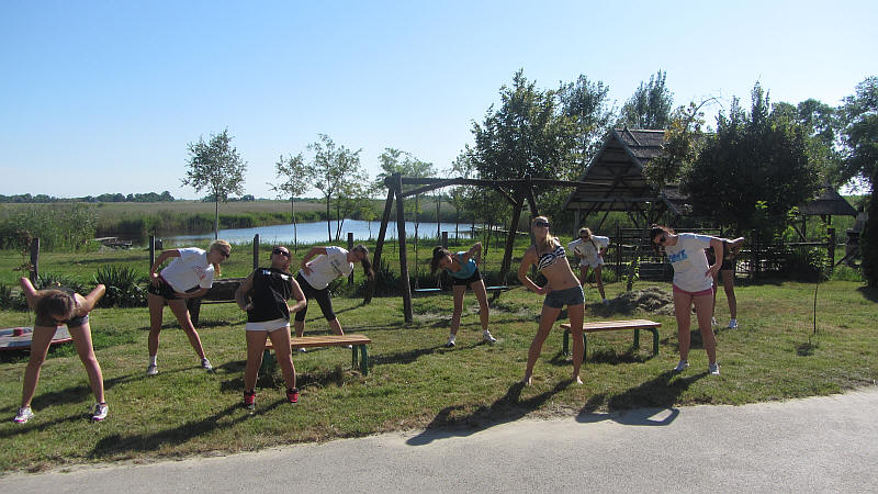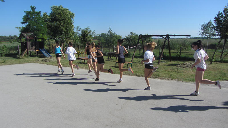 A ludasi edzéseken a bemelegítés a szállás előtti sportpályán történt.