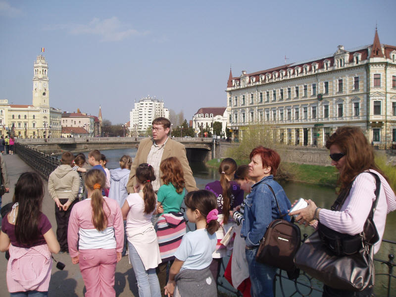 Lukács Sándor, a nagyváradi testvériskolánk pedagógusa mutatta be tanulóinknak Ady városát. A Körös partjáról indultunk.