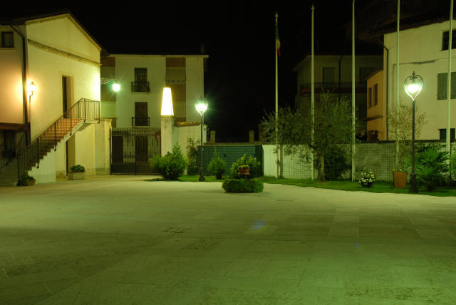 A gondozott szállodai udvar éjszaka is szép.