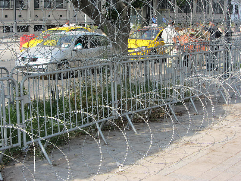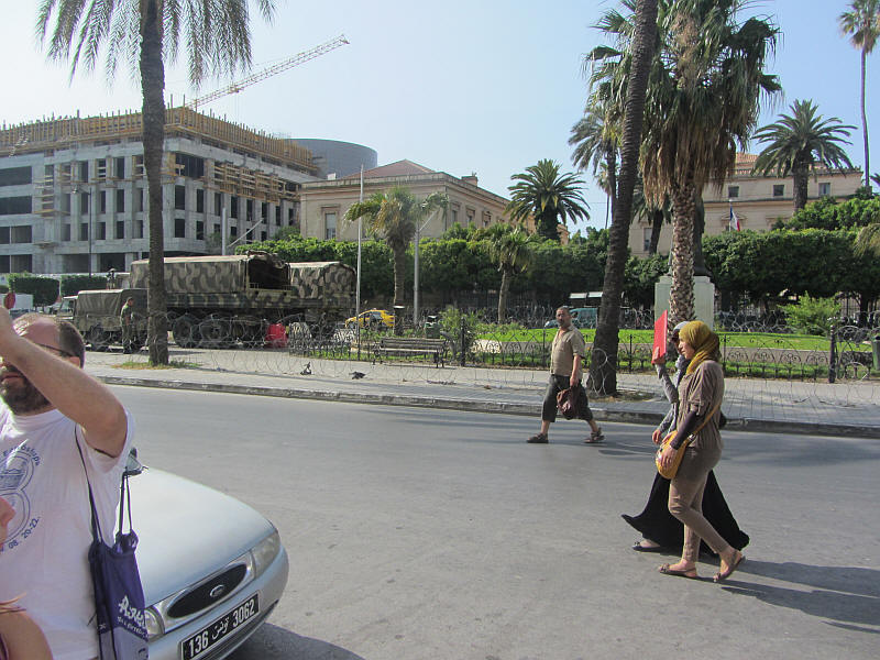A Külügyminisztérium Tunéziát a fokozott biztonsági kockázatot rejtő országok közé sorolta indulásunkkor. Bár mi folyamatosan a tunéziaiak barátságosságát, nyitottságát éreztük, több kép jelezte, hogy kell az odafigyelés. Szállodánk tőszomszédságában a milicisták egyik épülete állt.
